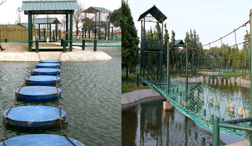 湖光水色旖旎,生态环境迷人 ,它由三组大型高空组合架、水上游乐园、勇者之路、中低空项目组合、场地游乐设施区和两块大型草坪等组成,